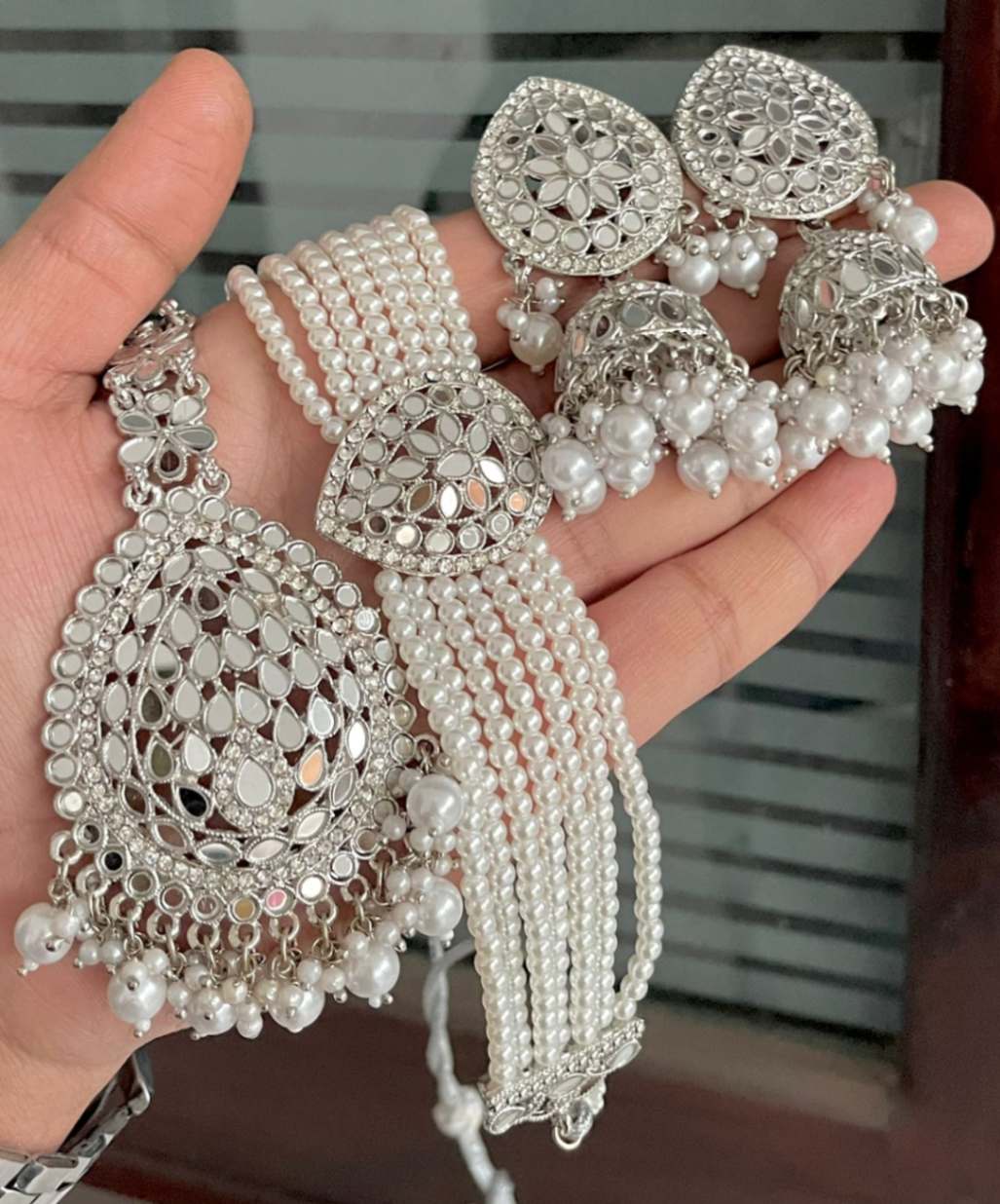 Beautiful Mirror 🪞 Chokker With Jumkie And Tika…. combo