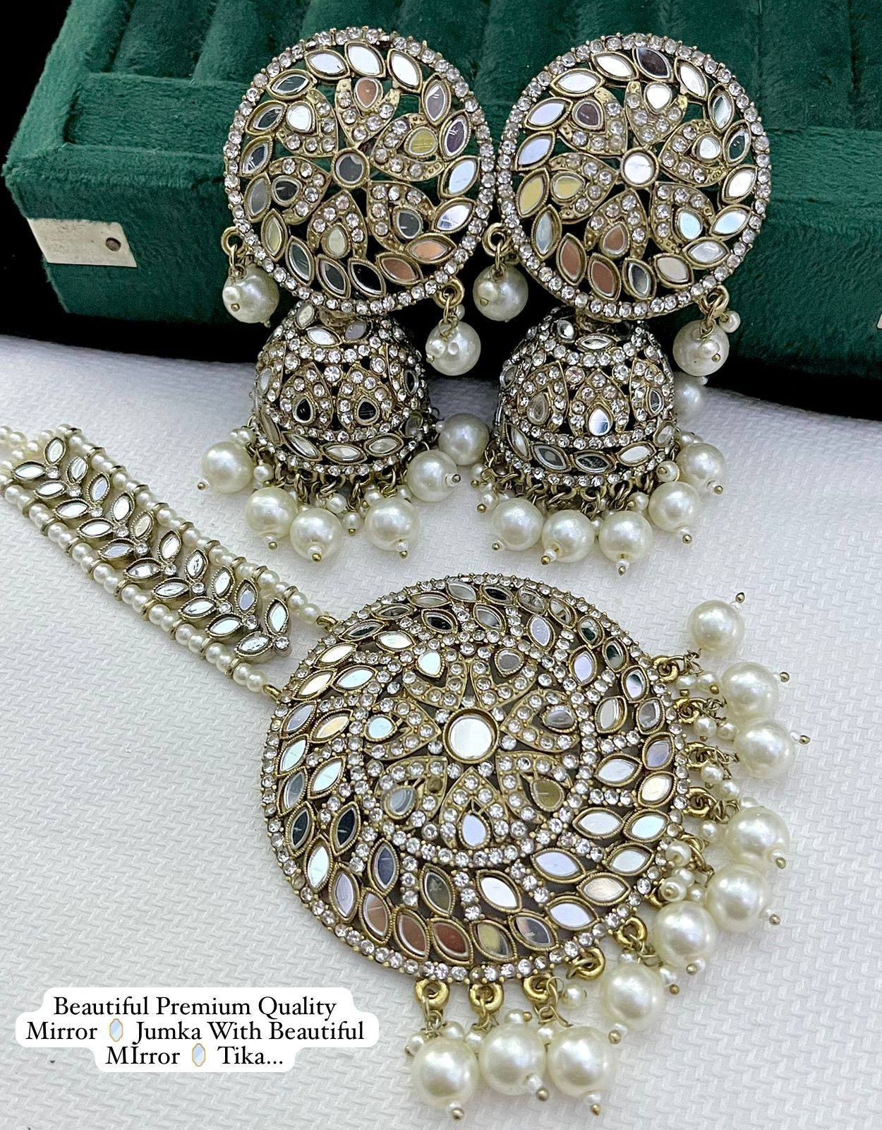 Beautiful Premium Quality Mirror 🪞 Jumka With Big Size Tika….