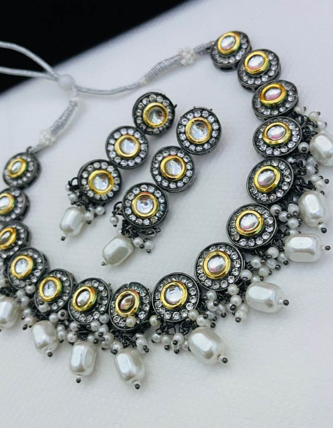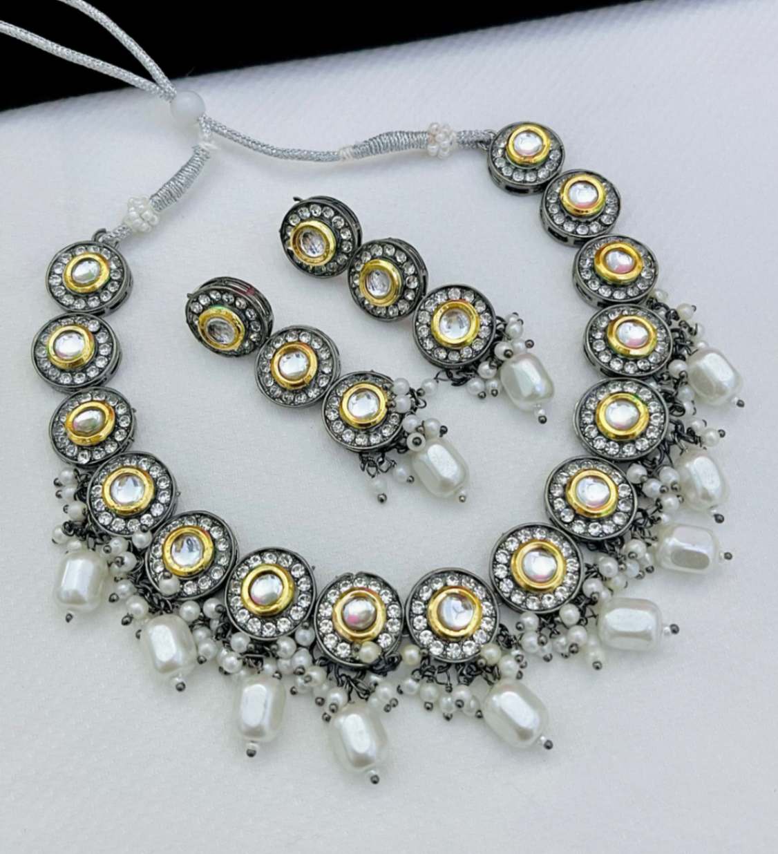 Beautiful Rhodium Polish Kundan Chokker With Tops….