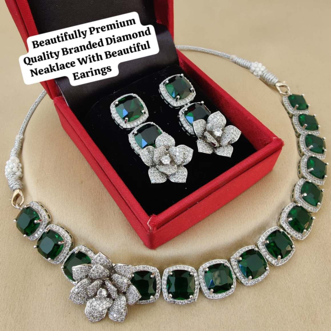 Be the first to review “Flower Branded Diamond Necklace With Earings”
